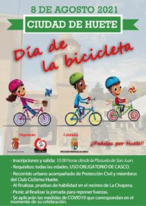 El Club Ciclismo Huete organiza, en colaboración con el Ayuntamiento, el Día de la Bicicleta que se celebrará el próximo domingo 8 de agosto. Pretende ser una actividad deportiva participativa para toda la familia con el objetivo de pasar una buena mañana recorriendo las calles de la ciudad y fomentando la práctica del ciclismo.