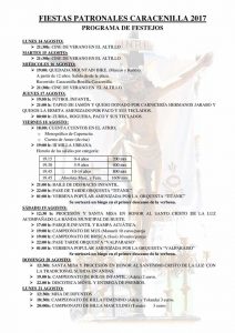 El viernes 18 se celebrará la tercera edición de la carrera de atletismo Milla Urbana en Caracenilla. El sábado 19 a las 12:30 horas se celebrará la Solemne Procesión y Santa Misa en honor al Santo Cristo de la Luz, acompañado por la Banda Municipal de Huete.