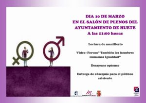SERVICIOS SOCIALES, INFANCIA Y MUJER TABLÓN DE ANUNCIOS Día de la Mujer en Huete Ayuntamiento de Huete 25 febrero 2020 El salón de plenos del Ayuntamiento de Huete acogerá la conmemoración el Día de la Mujer el próximo 10 de marzo a las 11:00 horas, organizado por el Centro de la Mujer de Huete. Navegación de entradas Anterior: Album de fotos del Carnaval Huete 2020, con gran participación y más fiestaSiguiente: Renovación de luminarias e implantación de telegestión en el alumbrado público Historias relacionadas CULTURA TABLÓN DE ANUNCIOS TURISMO Inauguración de 5 nuevas exposiciones en los museos de fotografía y arte contemporáneo Ayuntamiento de Huete 20 octubre 2025 FESTEJOS SERVICIOS SOCIALES, INFANCIA Y MUJER Huete celebra el Día de la Mujer Rural con varias actividades Ayuntamiento de Huete 17 octubre 2025 DEPORTES Y JUVENTUD SERVICIOS SOCIALES, INFANCIA Y MUJER TABLÓN DE ANUNCIOS VII Marcha Solidaria el domingo 19 de octubre en Huete Ayuntamiento de Huete 14 octubre 2025