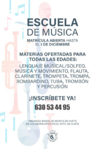 La Banda de Música de Huete y el Ayuntamiento ofertan un año más las clases de la Escuela de Música, una propuesta formativa dirigida a todas las edades que permite iniciarse o perfeccionar conocimientos musicales en un ambiente cercano y participativo.