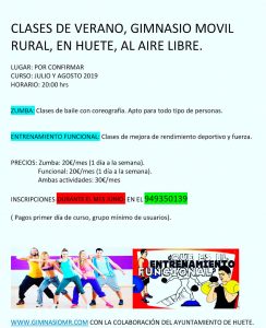Este verano tenemos clases del Gimnasio Móvil Rural en Huete, al aire libre, durante los meses de julio y agosto.
