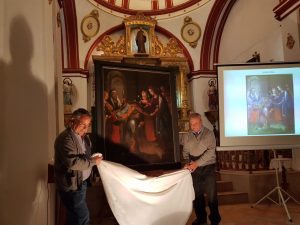 Efectivamente, se cumplió el programa y a las 16:30 en la Ermita de San Gil y a las 18 horas en la Iglesia de Guadalupe se procedió a la entrega de los lienzos restaurados. Intervinieron en ambos actos Teresa Cavestany que explicó con detalle el proceso de restauración de cada uno de los lienzos, utilizando una presentación en power-point, para posteriormente iluminar el lienzo y descubrirlo, durante la presentación estuvo tapado con una tela, respondiendo a las preguntas y comentarios que se le hicieron por parte de los asistentes; con posterioridad intervinieron un representante de la Fundación, en cada templo uno de cada barrio, cerrando cada acto el párroco de Huete: D. Juan Antonio González Caballero.
