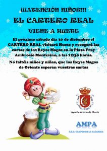 El próximo sábado día 30 de diciembre el CARTERO REAL visitará Huete y recogerá las cartas de los Reyes Magos en la Plaza Fray Ambrosio Montesino, a las 12:30 horas.