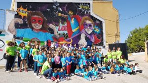 El mural ha sido posible gracias a la colaboración de toda la comunidad educativa que ha aportado, mediante una rifa y otras iniciativas, los recursos para que sea posible, contando también con la colaboración del Ayuntamiento de Huete en su realización.