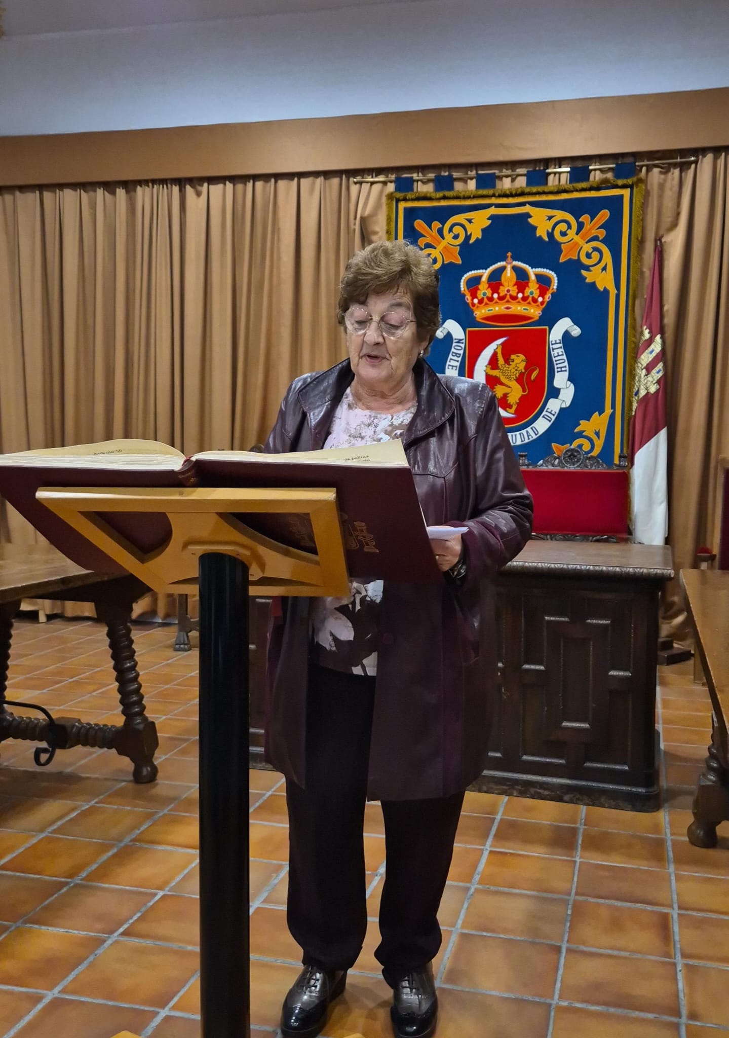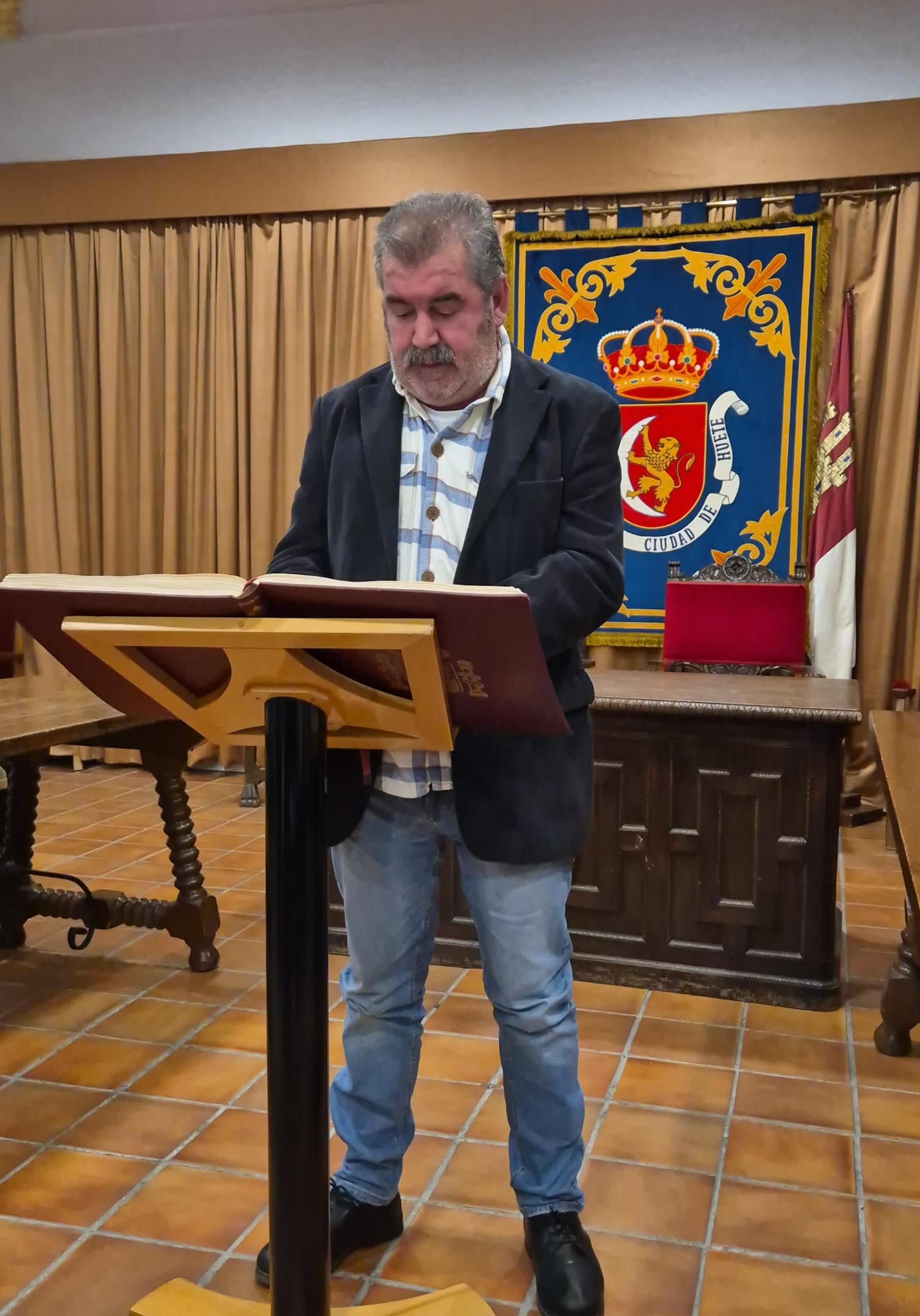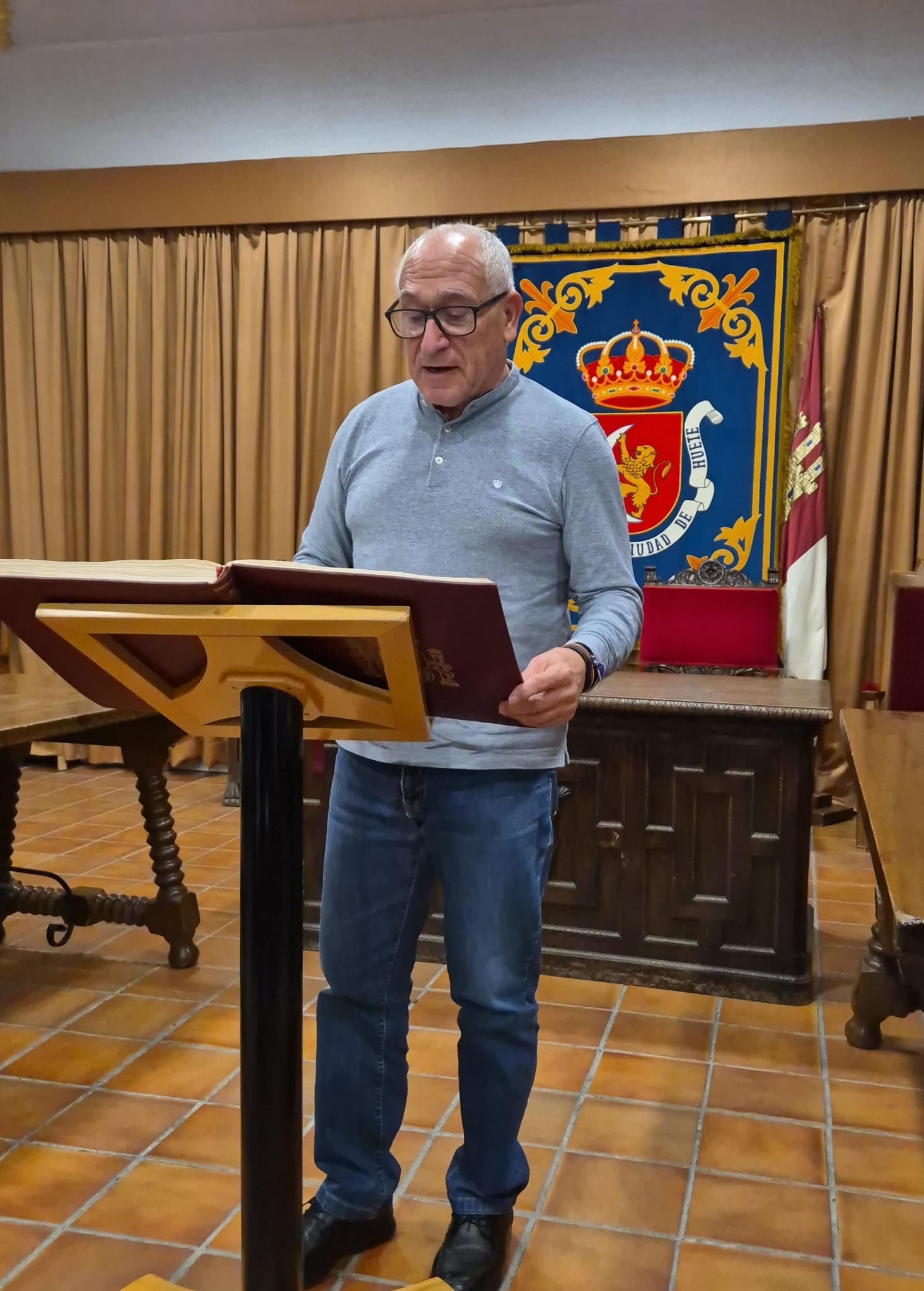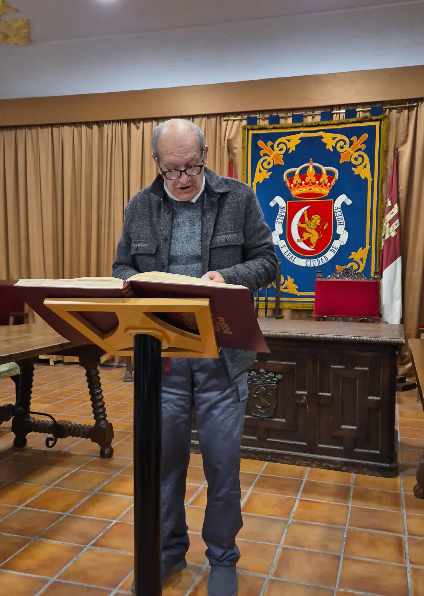 El acto conmemorativo tuvo lugar en el Salón de Plenos del Ayuntamiento, fue presentado por la Concejal de Cultura Dª Alejandra Palomar Palomar y consistió en la lectura, por vecinos de Huete, de 25 artículos de nuestra Constitución, intentando que cada artículo que leían, coincidiera con el trabajo que realizan o colectivo que representan.