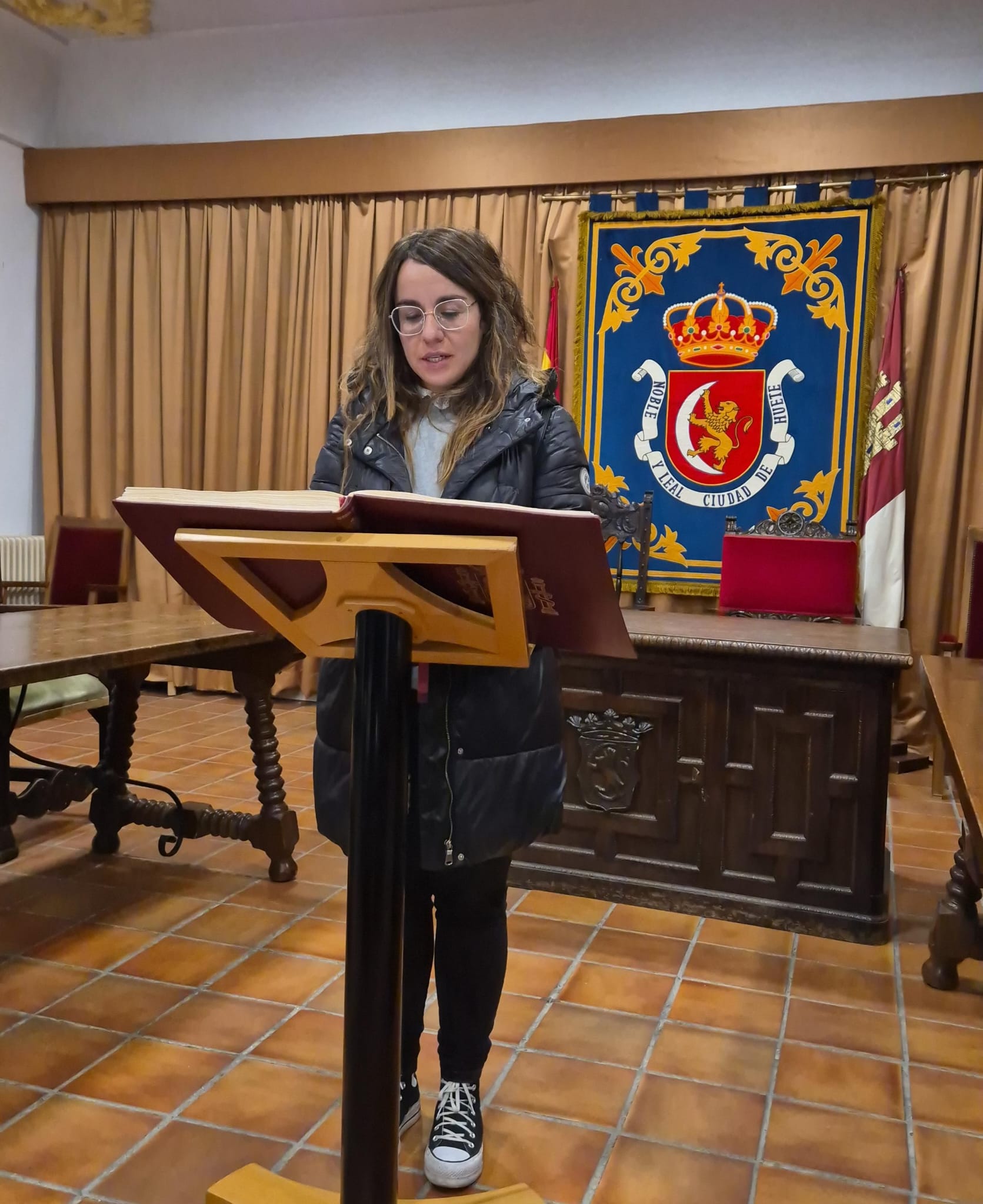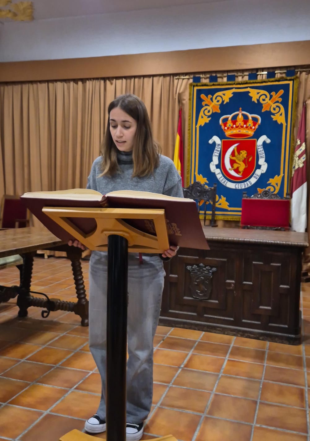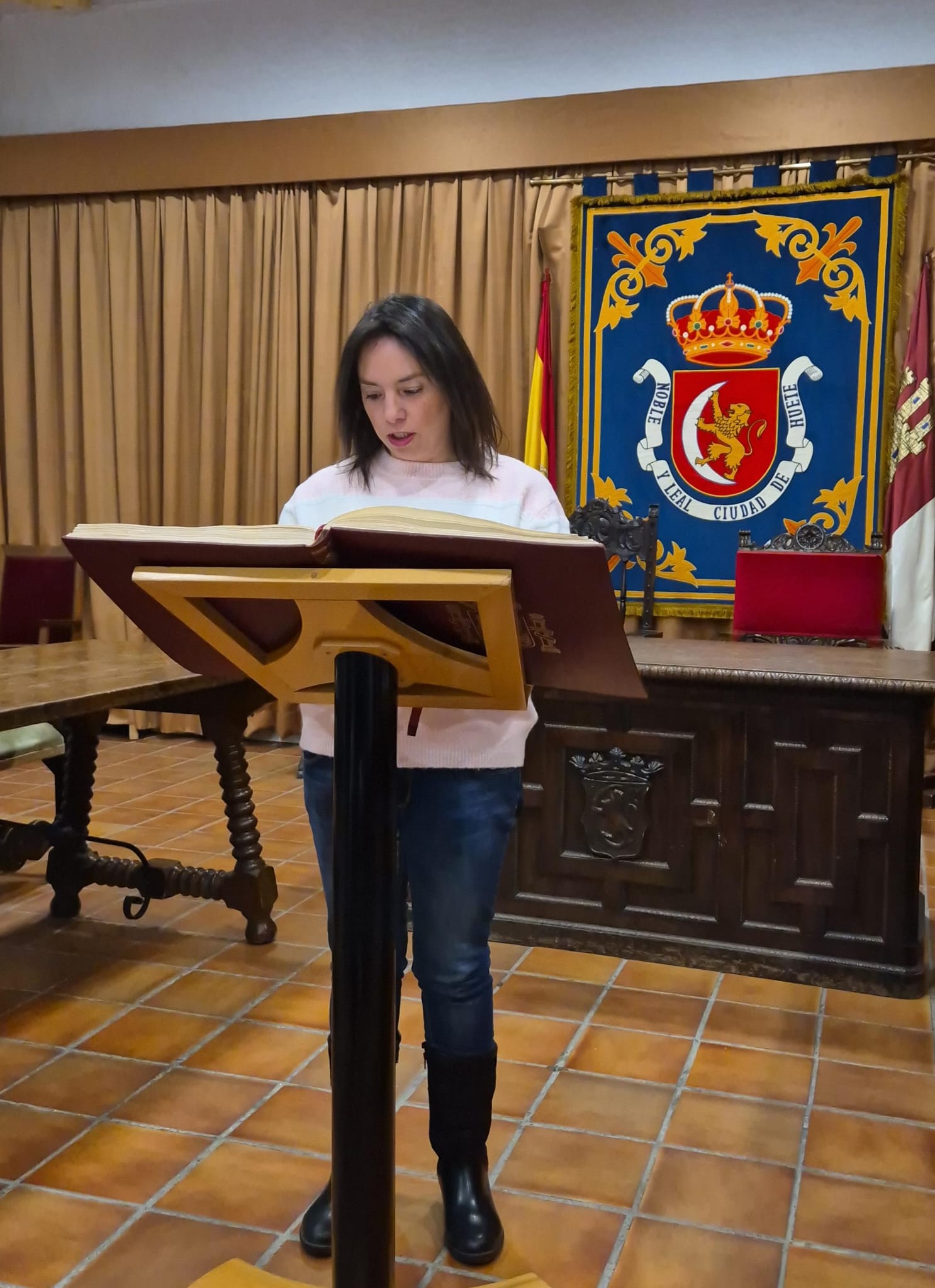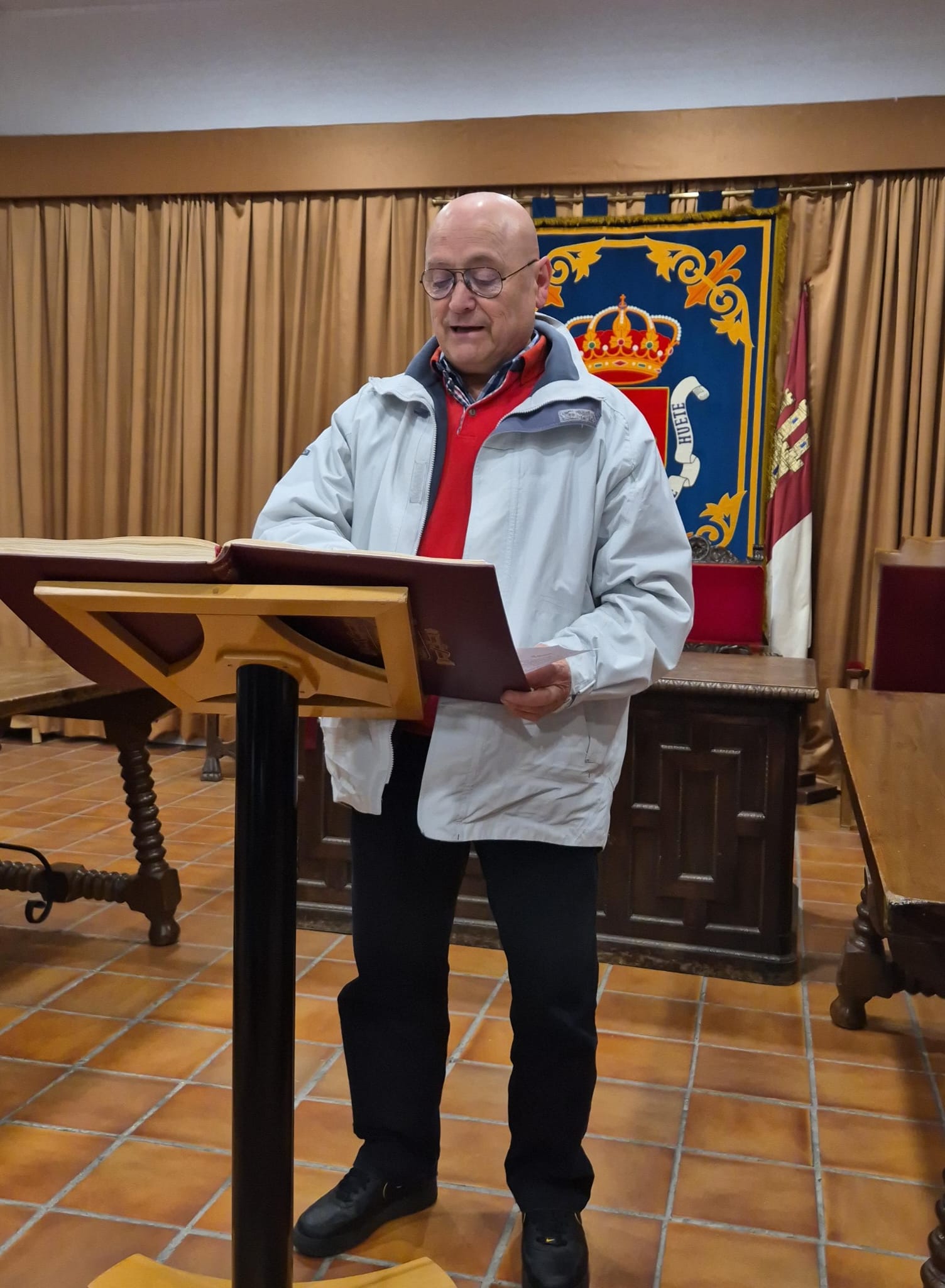 El acto conmemorativo tuvo lugar en el Salón de Plenos del Ayuntamiento, fue presentado por la Concejal de Cultura Dª Alejandra Palomar Palomar y consistió en la lectura, por vecinos de Huete, de 25 artículos de nuestra Constitución, intentando que cada artículo que leían, coincidiera con el trabajo que realizan o colectivo que representan.