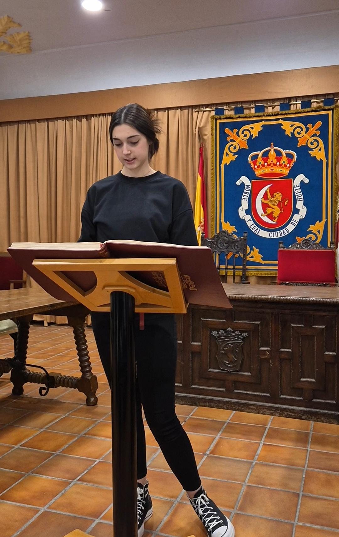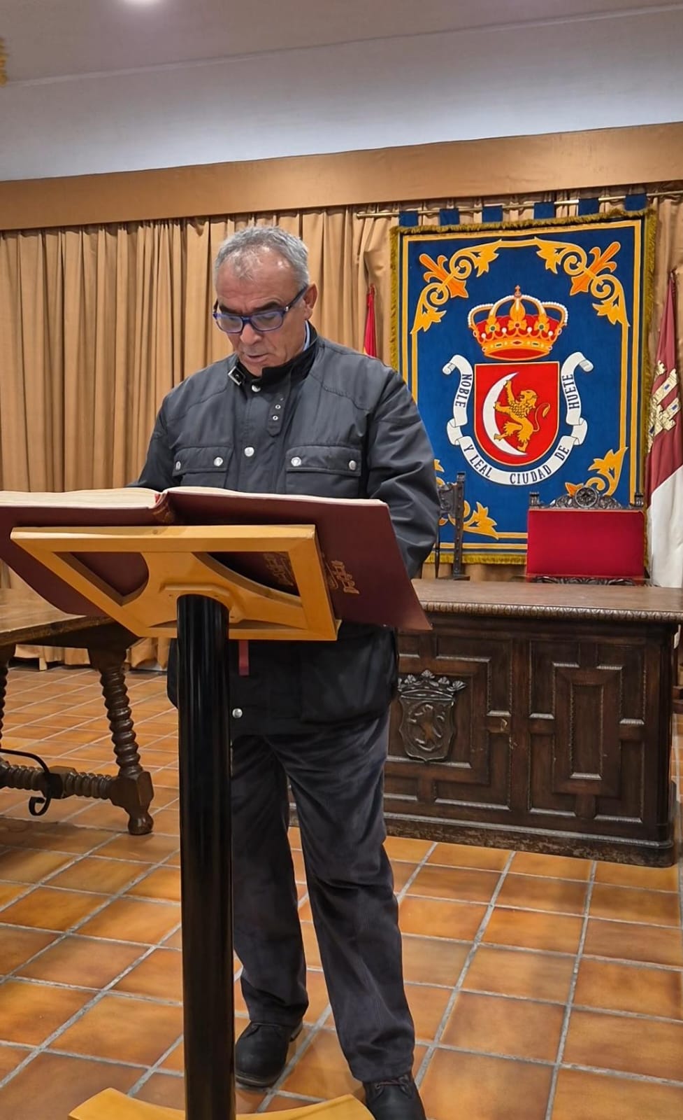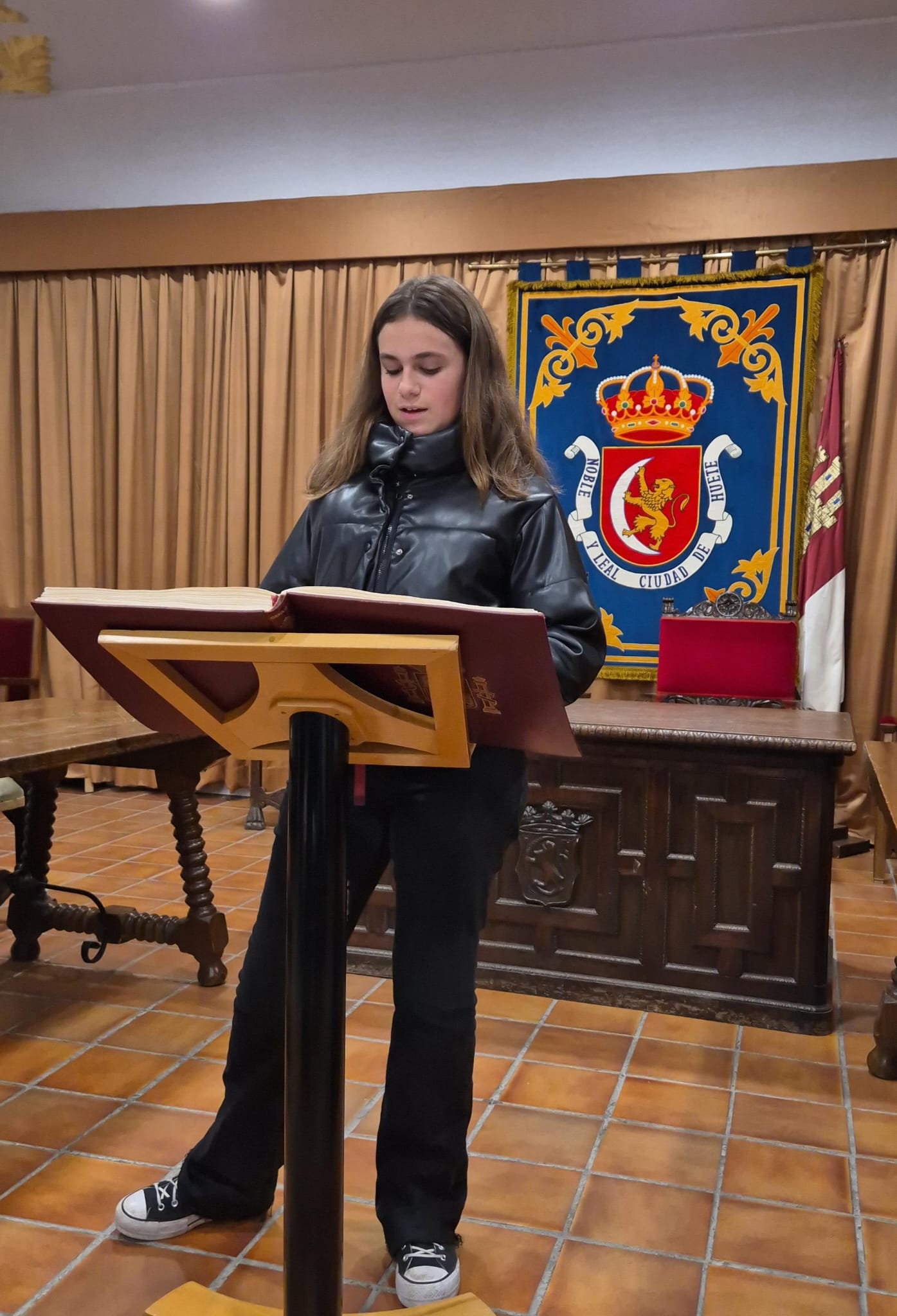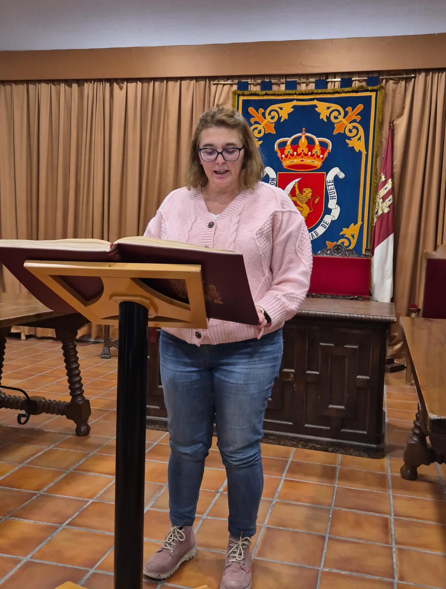 El acto conmemorativo tuvo lugar en el Salón de Plenos del Ayuntamiento, fue presentado por la Concejal de Cultura Dª Alejandra Palomar Palomar y consistió en la lectura, por vecinos de Huete, de 25 artículos de nuestra Constitución, intentando que cada artículo que leían, coincidiera con el trabajo que realizan o colectivo que representan.