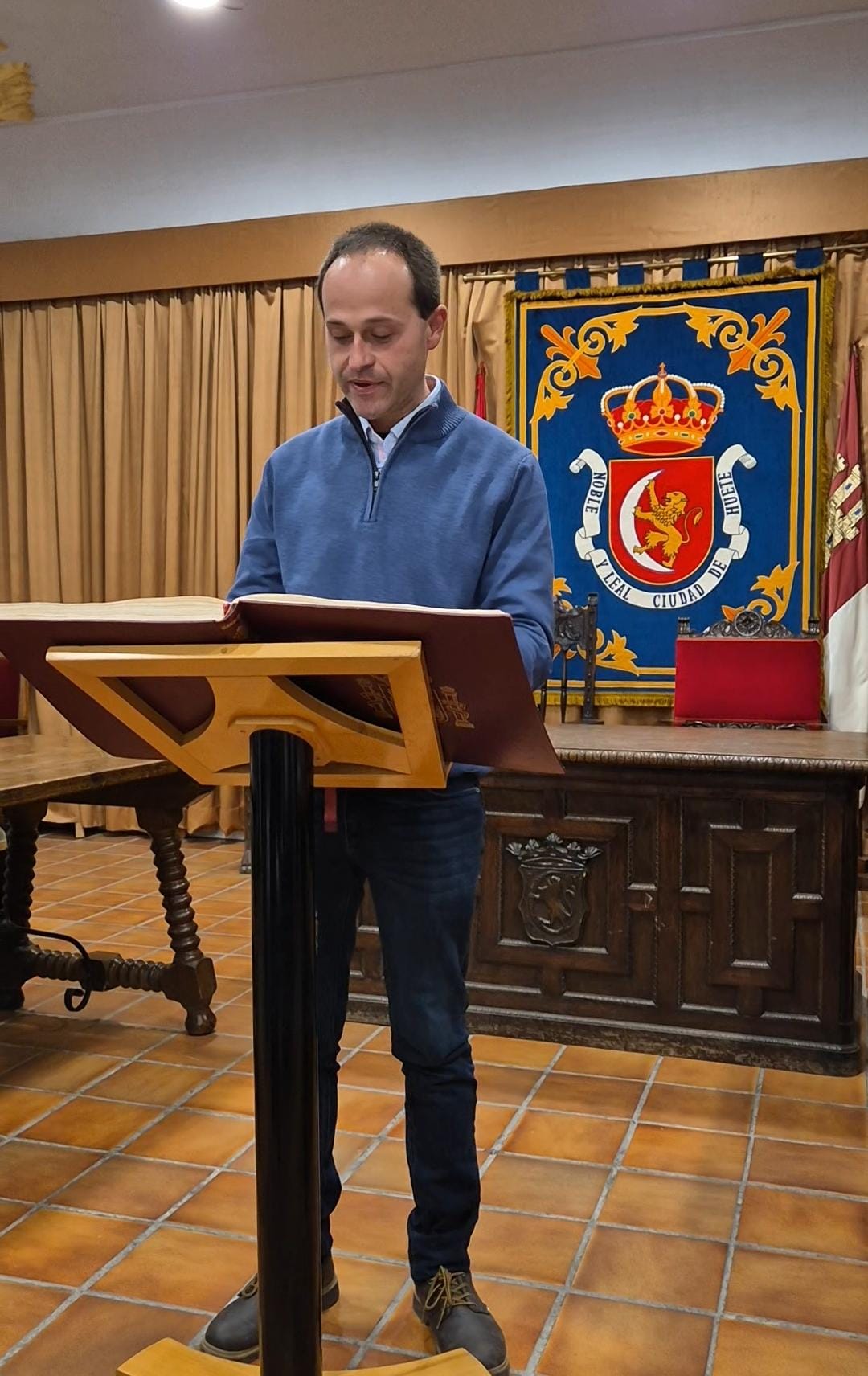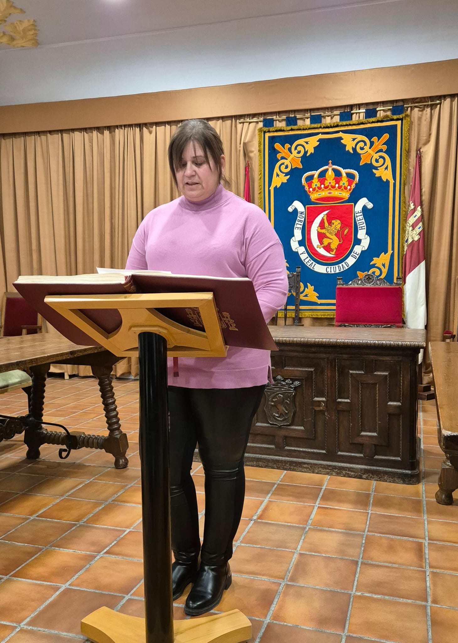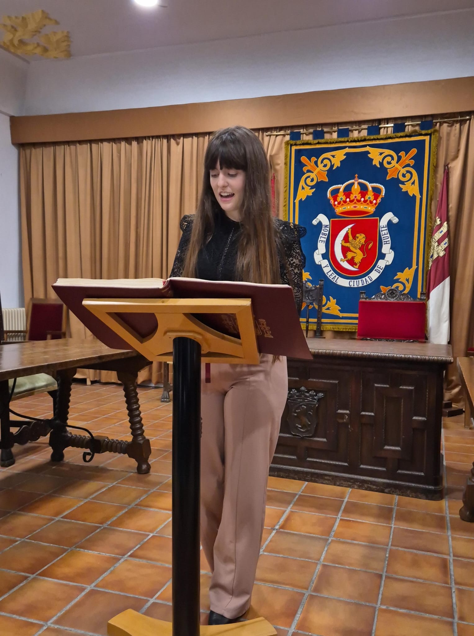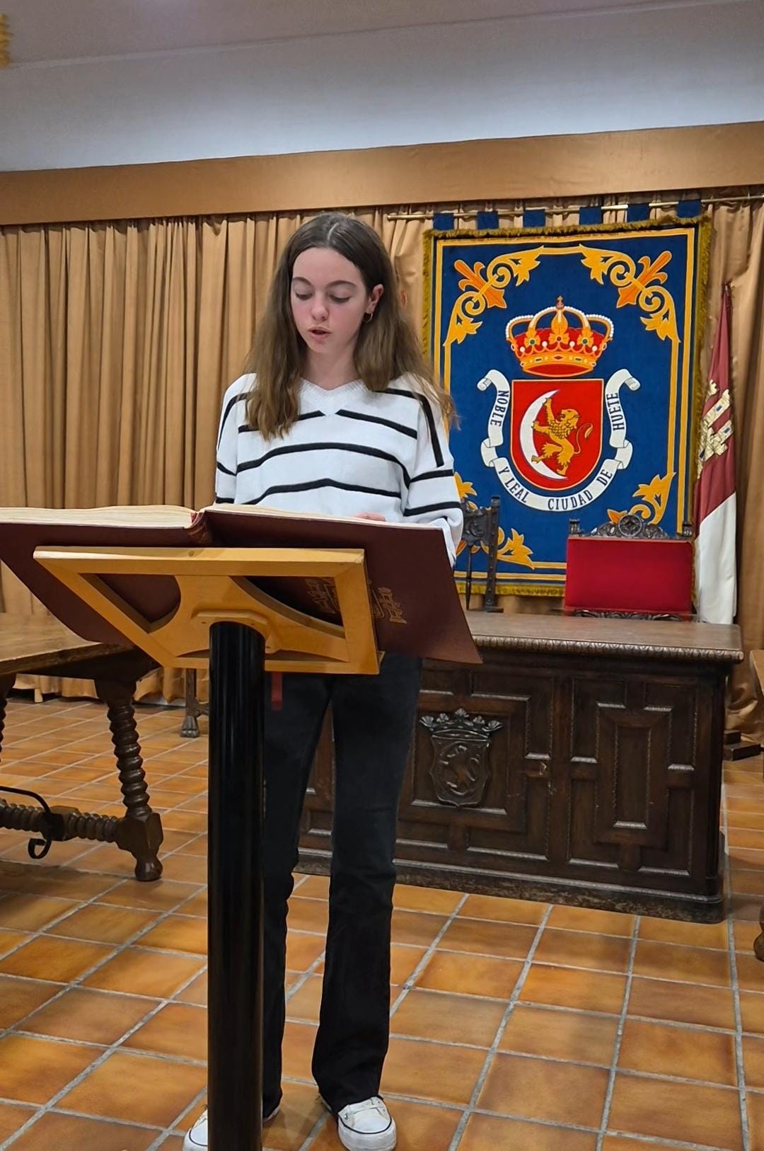 El acto conmemorativo tuvo lugar en el Salón de Plenos del Ayuntamiento, fue presentado por la Concejal de Cultura Dª Alejandra Palomar Palomar y consistió en la lectura, por vecinos de Huete, de 25 artículos de nuestra Constitución, intentando que cada artículo que leían, coincidiera con el trabajo que realizan o colectivo que representan.