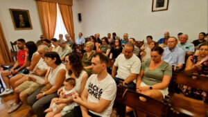 Medio centenar de personas se dieron cita en el salón de plenos para felicitarle en este merecido homenaje. La ceremonia comenzó con la proyección de un vídeo que recopilaba fotografías de su etapa en el Ayuntamiento, acompañado de unas palabras del anterior alcalde, Fernando Romero —regidor con el que inició su andadura como empleado municipal—, que no pudo estar presente en el acto.
