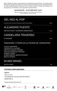 Informamos que el próximo sábado 25 de octubre a las 12:00 horas celebraremos la inauguración simultánea de cinco nuevas exposiciones en el Museo de Arte Contemporáneo Florencio de la Fuente y Museo de Fotografía de la Fundación Antonio Pérez.
