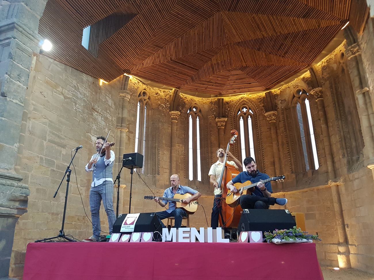 Como colofón a las actividades culturales y lúdicas, los asistentes disfrutaron, a la caída del sol, de un maravilloso concierto de jazz en el Ábside de Sta. María de Atienza a cargo del grupo Menil, compuesto por Javier Sánchez (guitarra), Raúl Márquez (violín), Fred PG (guitarra) y Gerardo Ramos (contrabajo), organizado por la Fundación Huete Futuro dentro de su VIII Ciclo Jazz Solsticio de Verano.