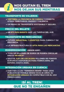 El Ayuntamiento de Huete se une a la manifestación convocada para este domingo 27 de marzo ante el cierre inminente de nuestra línea de ferrocarril por parte del Gobierno de España, hoy conocíamos la noticia de la eliminación de la declaración de OBLIGADO SERVICIO PÚBLICO de nuestra línea por parte del Consejo de Ministros.