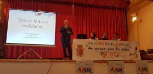 A las 20:00 horas, dio comienzo en el Salón de Actos del Ayuntamiento la Charla informativa bajo el título “Cáncer: Mitos y Realidades”, impartida por Dª Paula Espinosa Olarte, Oncóloga, Hospital 12 de Octubre de Madrid. La segunda parte de la charla informativa se desarrolló bajo el titulo “¿Se hereda el Cáncer?, Cáncer familiar y Consejo Genético”, impartida por D. Juan Miguel Baquero López, Biólogo, Investigador predoctoral del Centro Nacional de Investigaciones Oncológicas de Madrid.