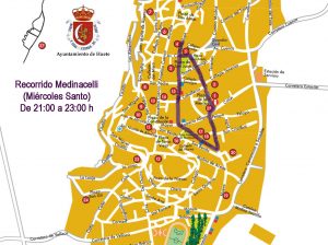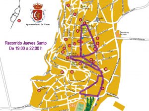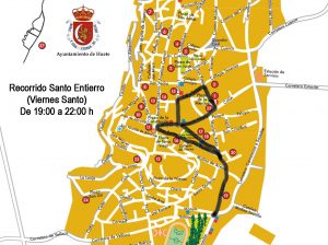 A continuación dejamos los mapas de Huete con los recorridos de cada procesión y su horario, marcando las calles por las que discurre que serán las calles en las que se prohibirá aparcar durante los horarios establecidos.