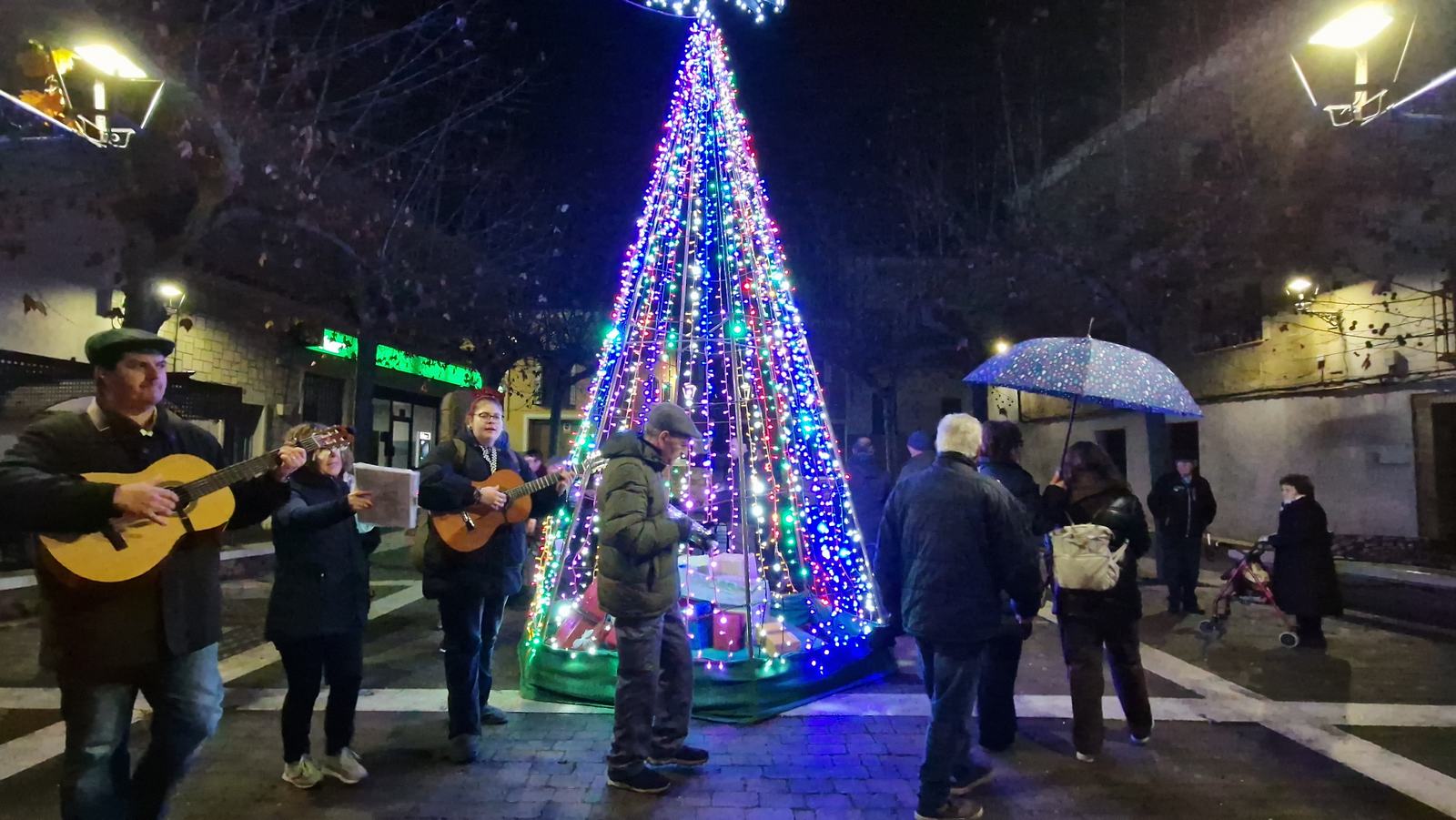 Multitud de público pudo disfrutar de un pequeño repertorio de villancicos interpretados por la Rondalla de Huete, en directo, y brindamos todos juntos con sidra por una feliz Navidad.